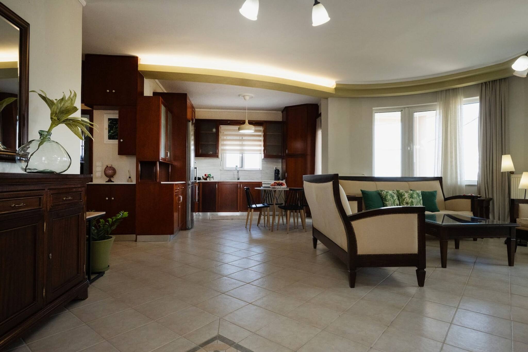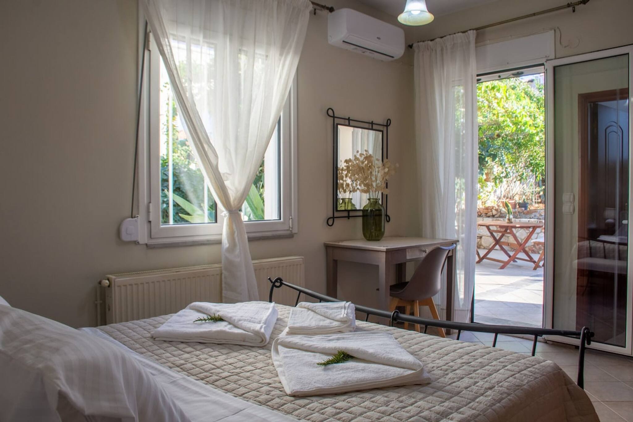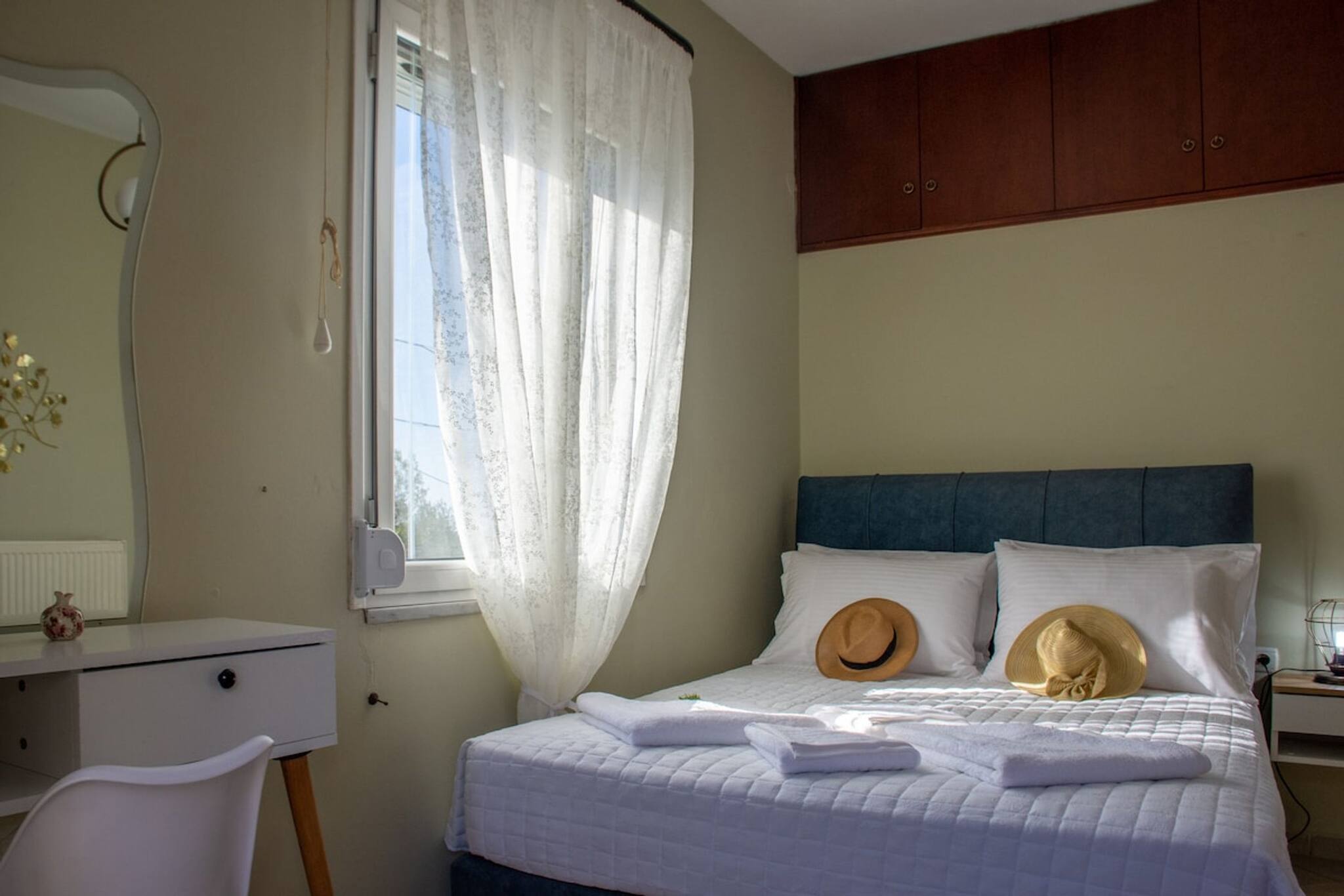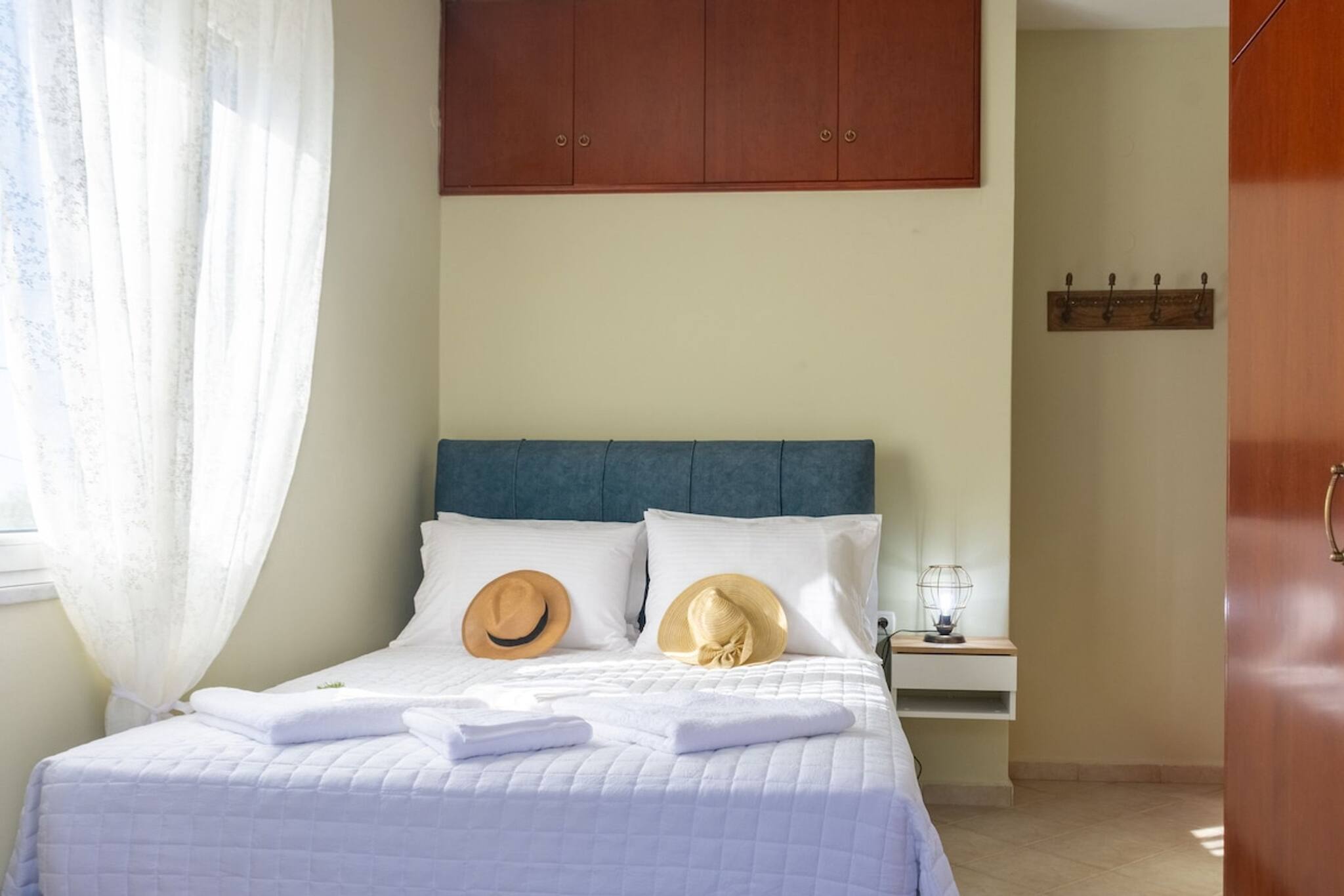 The apartment in Chania has 3 bedrooms and has capacity for 5 people.