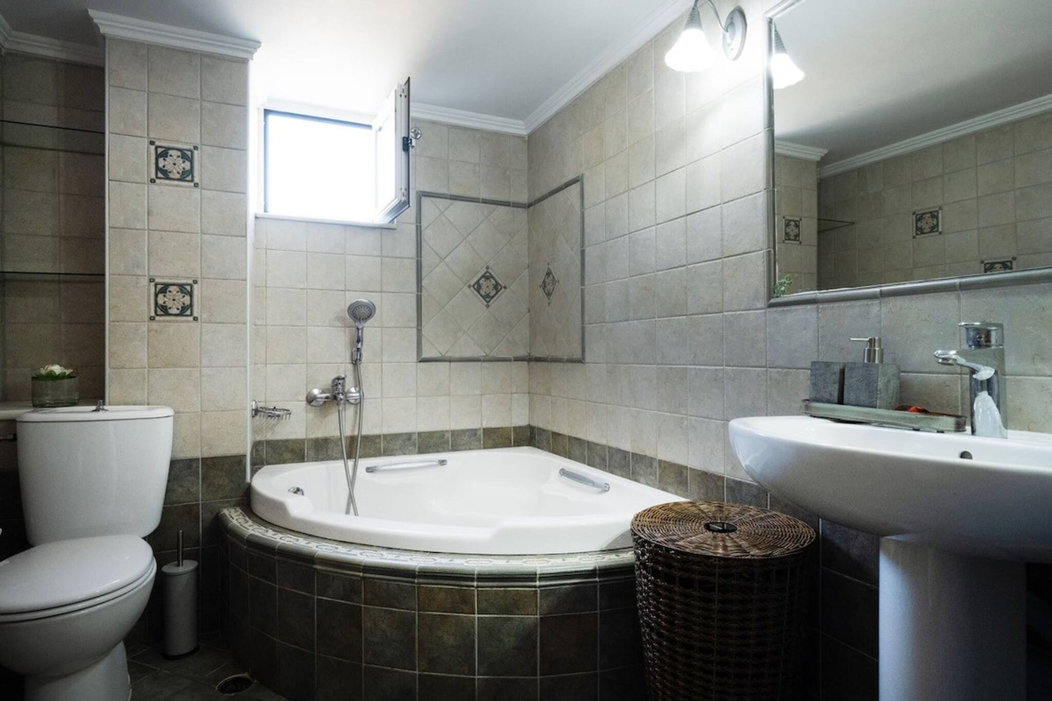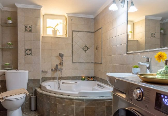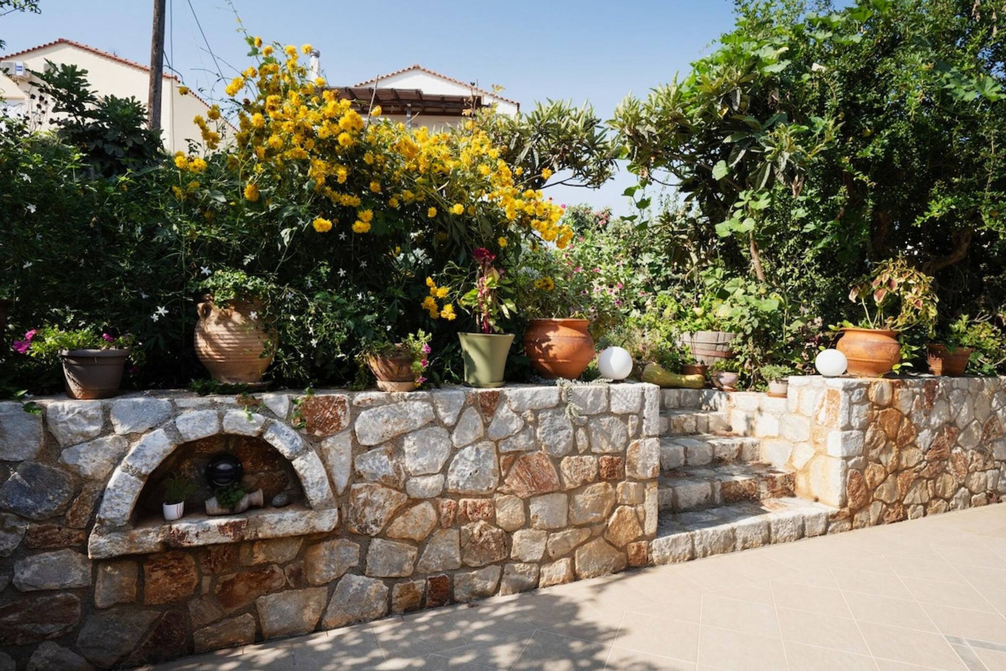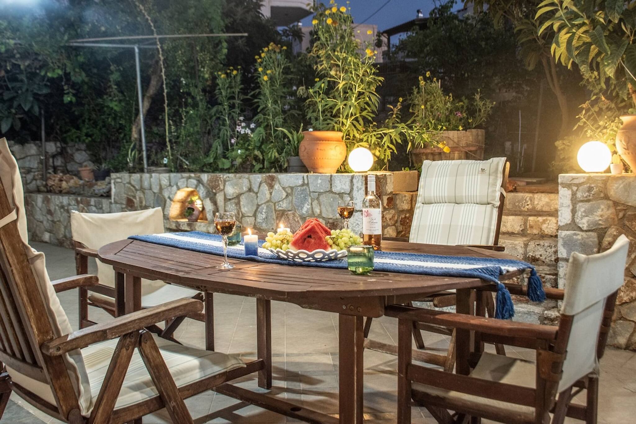 The apartment in Chania has 3 bedrooms and has capacity for 5 people. The apartment is 1,292 ft². The accommodation is equipped with the following items: garden, outdoor furniture, washing machine, dryer, fireplace, iron, internet (Wi-Fi), hair dryer, air-conditioned, 1 TV.In the open plan kitchen, refrigerator, oven, dishwasher, dishes/cutlery, kitchen utensils, coffee machine, toaster, kettle and stove are provided.
