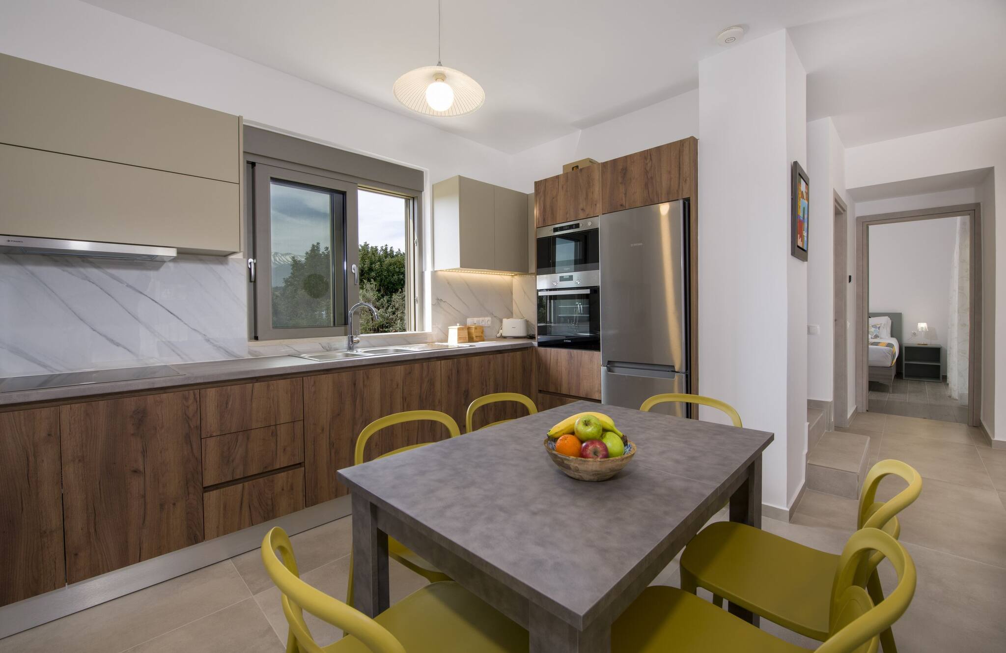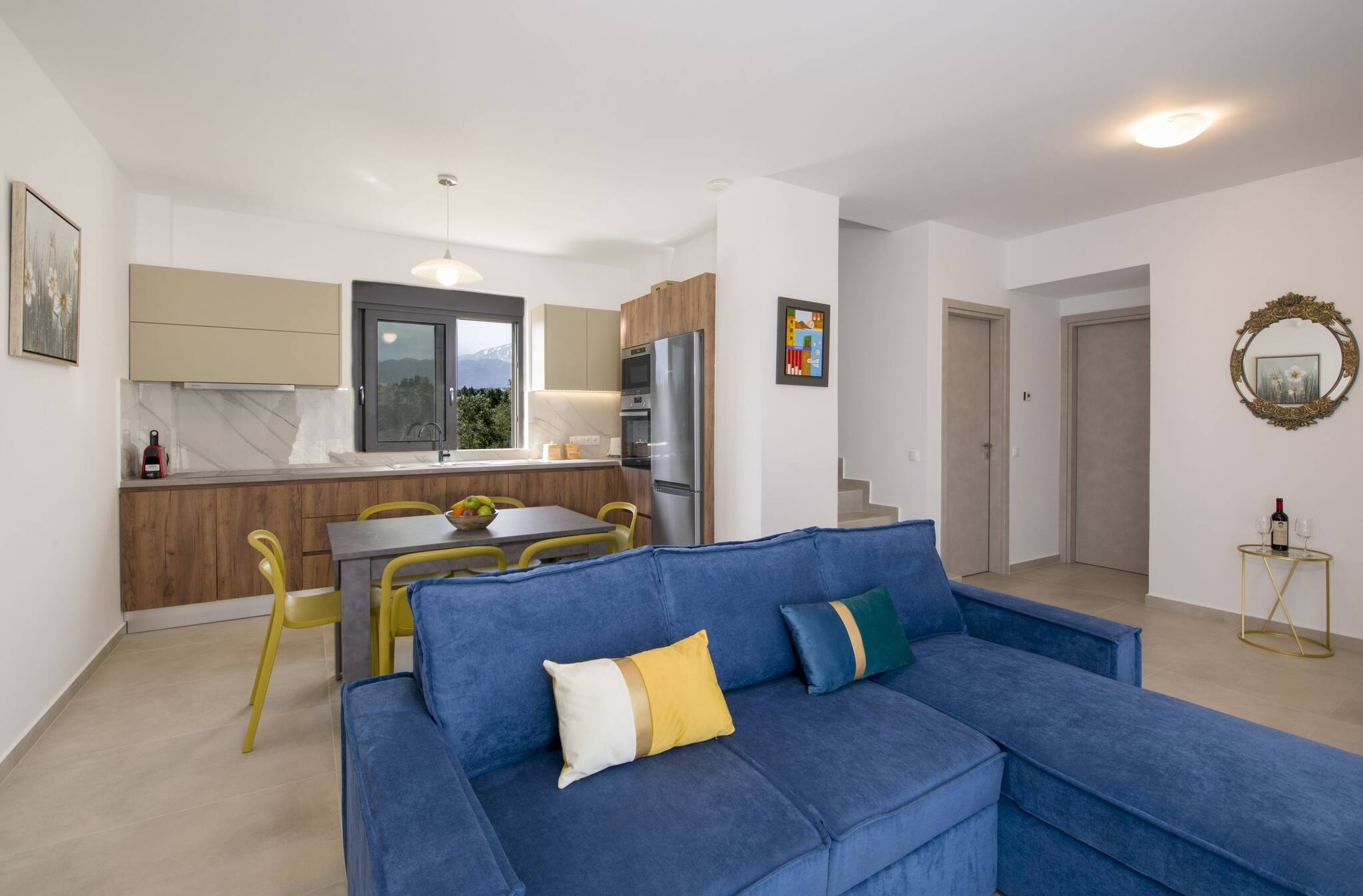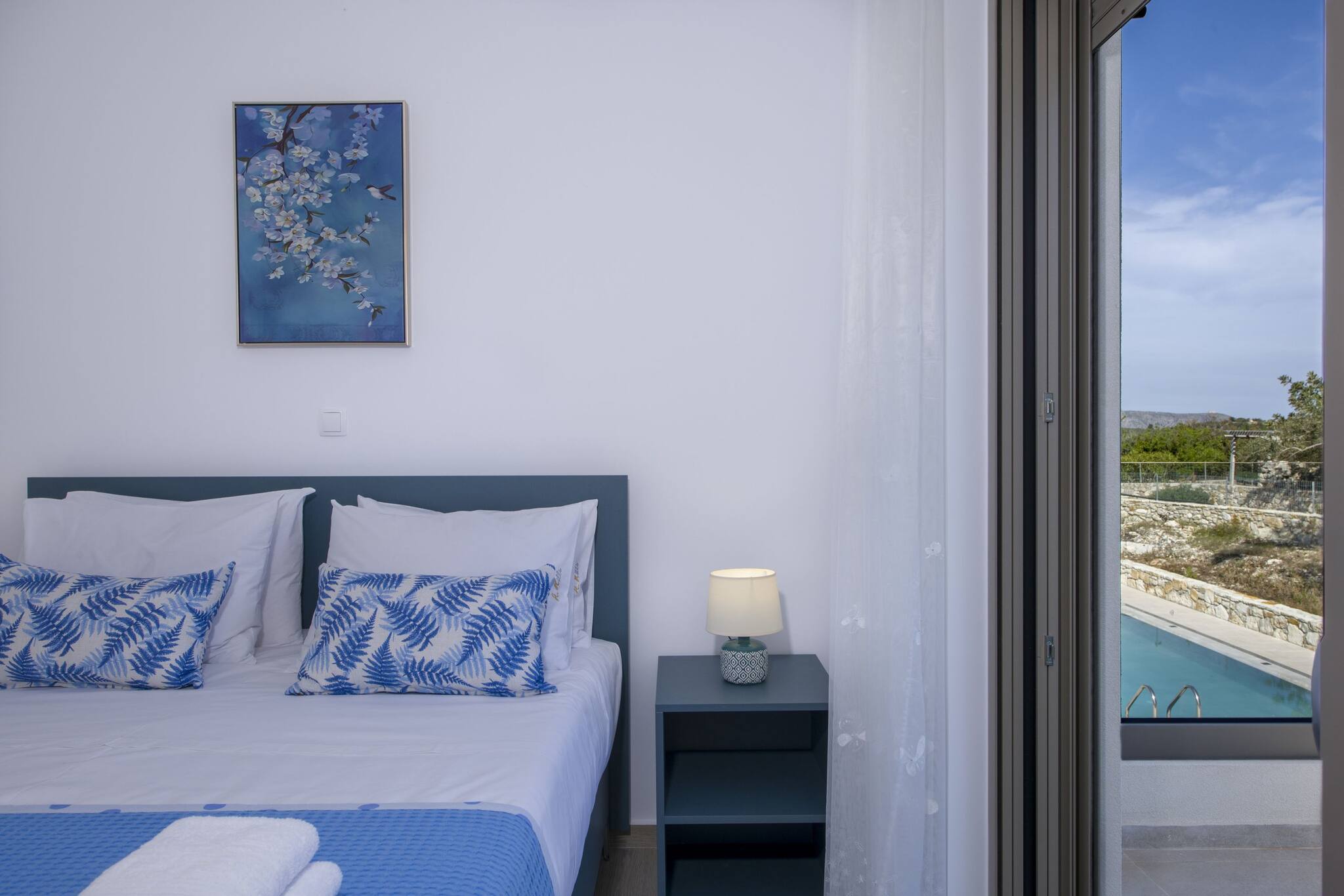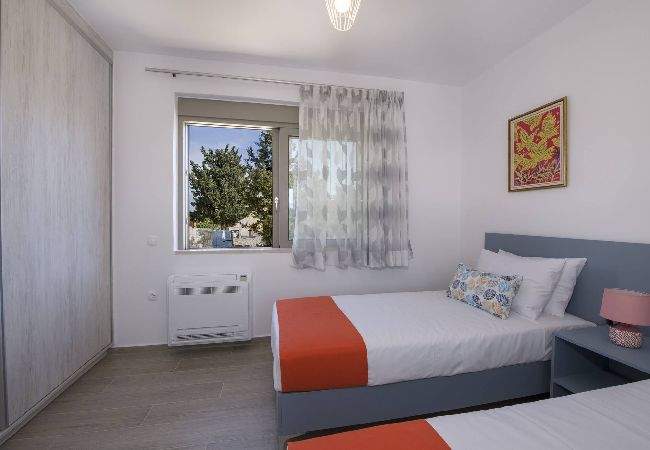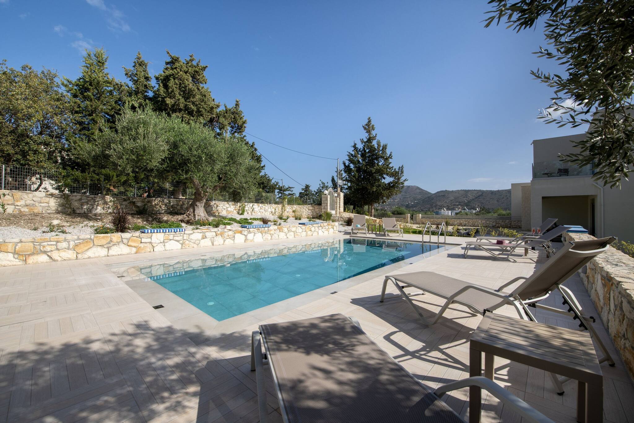 The villa in Douliana has 3 bedrooms and has capacity for 6 people.