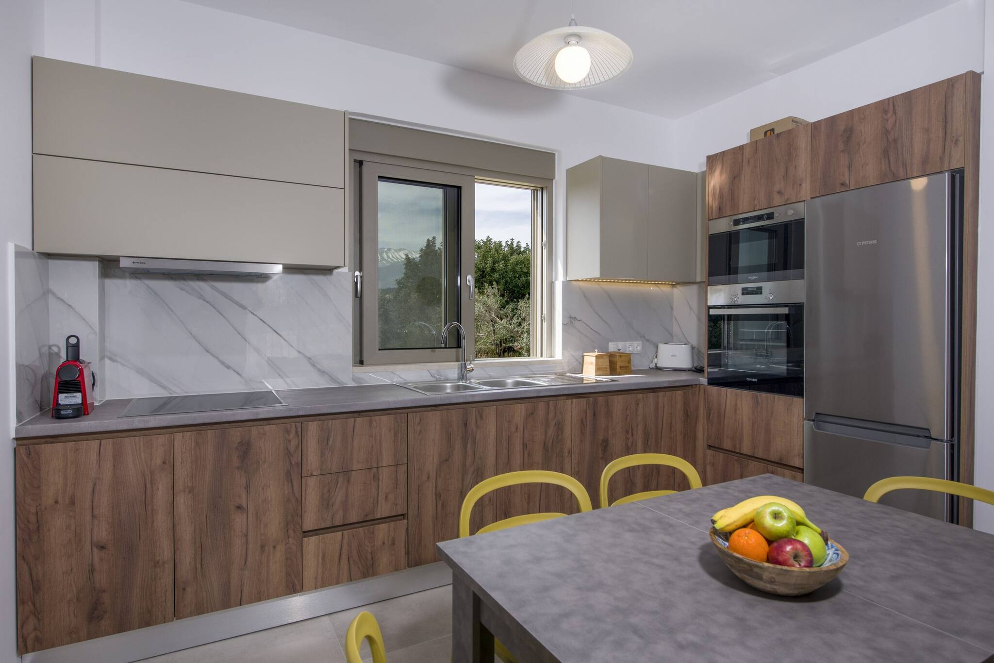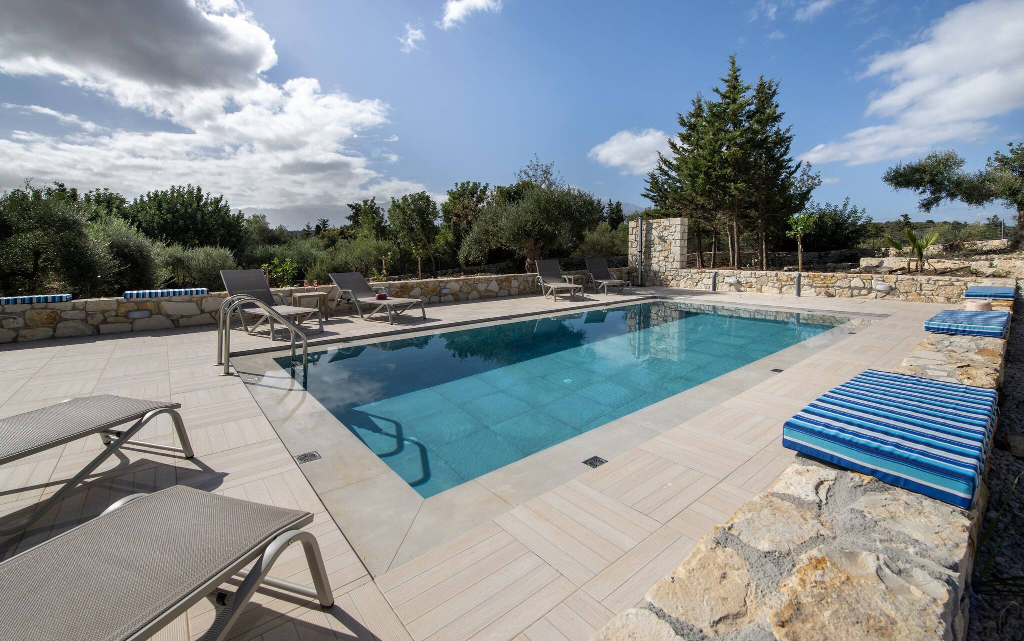 The villa in Douliana has 3 bedrooms and has capacity for 6 people. The villa is 1,076 ft². The accommodation is equipped with the following items: garden, outdoor furniture, fenced plot, 215 ft² terrace, washing machine, dryer, barbecue, iron, internet (Wi-Fi), hair dryer, balcony, air-conditioned, private swimming pool, open-air parking in the same building, mosquito nets throughout the accommodation, 1 TV.In the electric open plan kitchen, refrigerator, microwave, oven, dishwasher, dishes/cutlery, kitchen utensils, coffee machine, toaster, kettle and stove are provided.