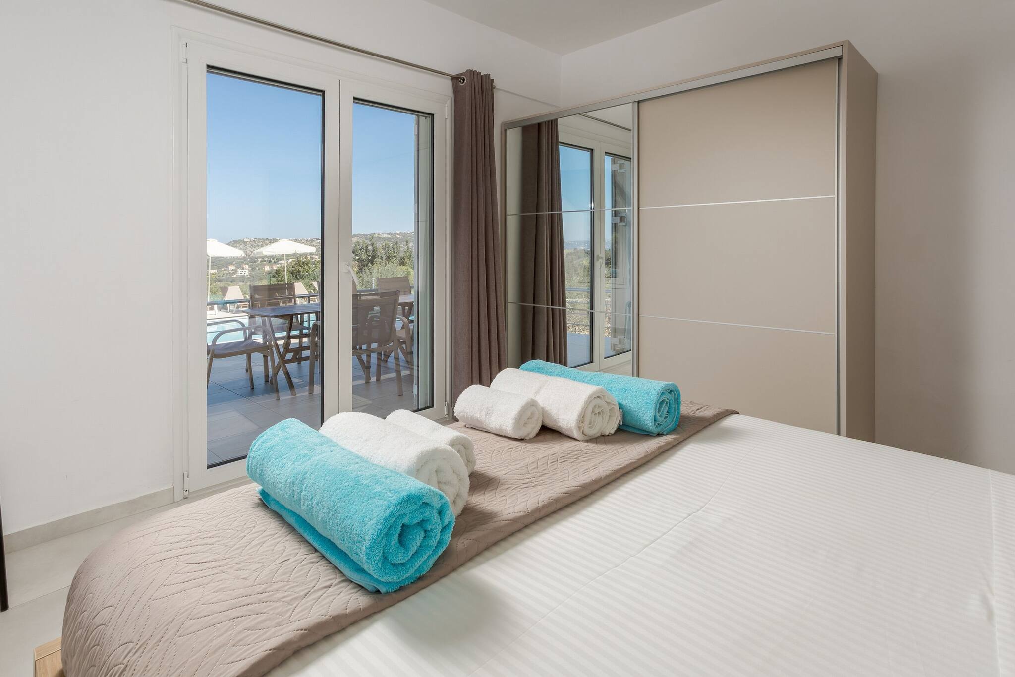 This luxurious 7-bedroom villa in a private vineyard features 3 fully-equipped kitchens, 5 stylish bathrooms, and a private pool surrounded by stunning vineyard views. The spacious outdoor area includes a BBQ for al fresco dining. With complete privacy and top-tier amenities, this villa is perfect for large groups or families seeking a peaceful retreat with all the comforts of modern living, making it an unforgettable getaway destination.