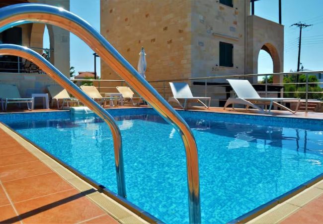 The villa in Stavros has 4 bedrooms and has capacity for 8 people.